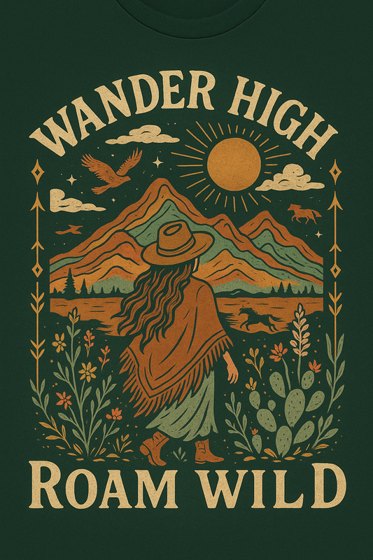 Wander High, Roam Wild – Boho Adventure T-Shirt